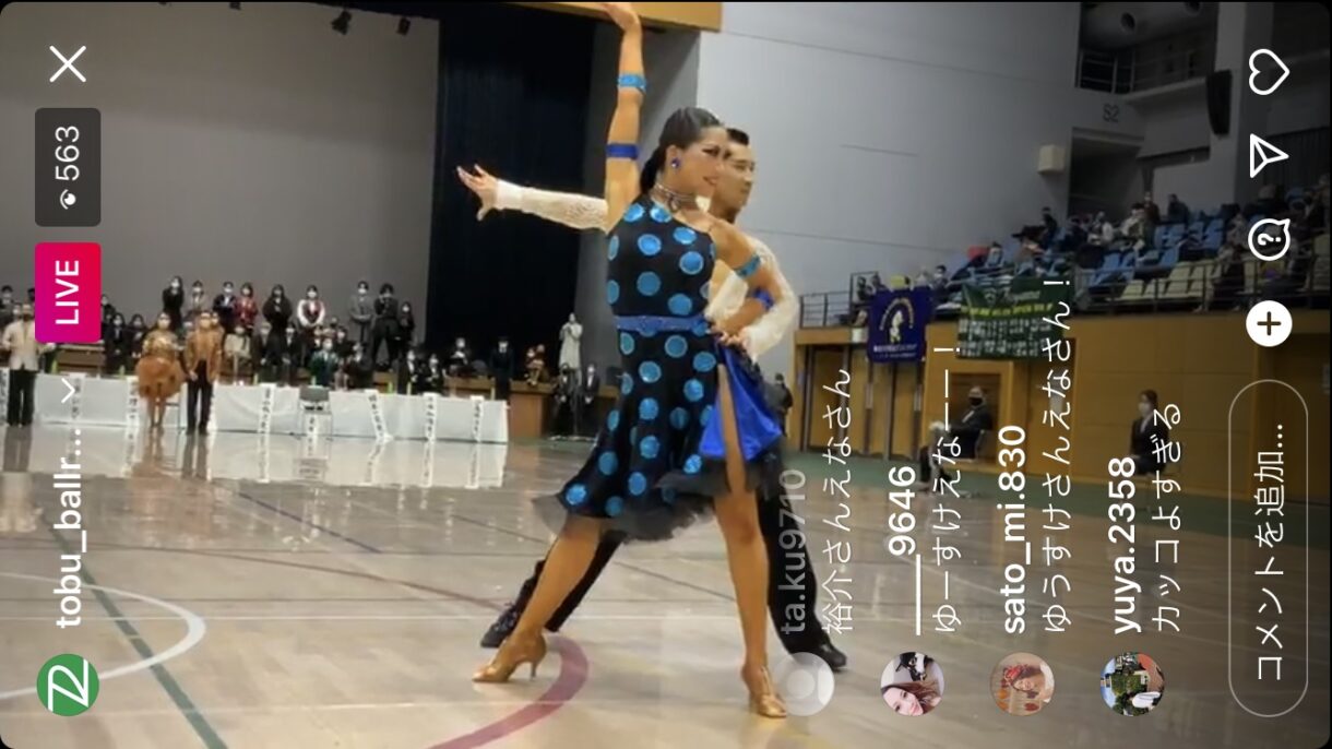 写真は、決勝のソロダンスで踊っている2人です♫ Instagramのライブ配信中に写しました! (ライブ配信だけに応援メッセージも流れてますねー!応援に行けなかった仲間からのメッセージです!!)