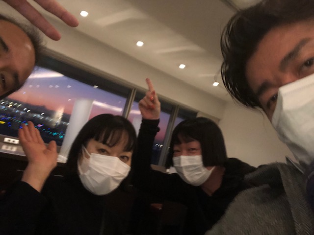 いつもお世話になっているJALさんのラウンジで4人揃いましたー♫若干ピンボケです・・・。