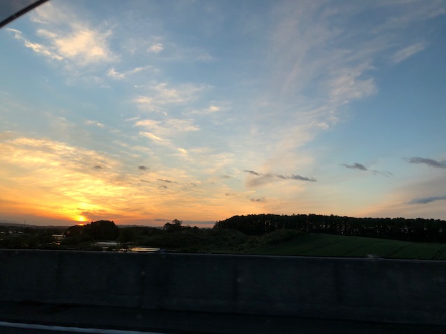 で、7時過ぎに千歳を通過しても、ご覧のように綺麗な夕焼け♫