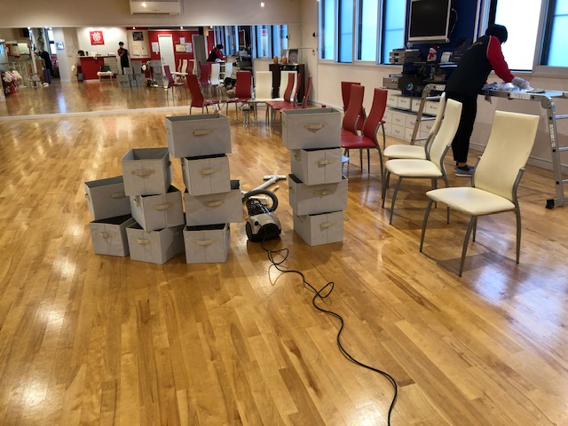 有志によるお手伝いの甲斐もあって、4時間ほどで掃除完了!! フロアの隅々からワックス掛け、控室の換気扇やフロア上に設置されているロスナイ(空気交換器)に至るまで、全て綺麗になりましたーー♫