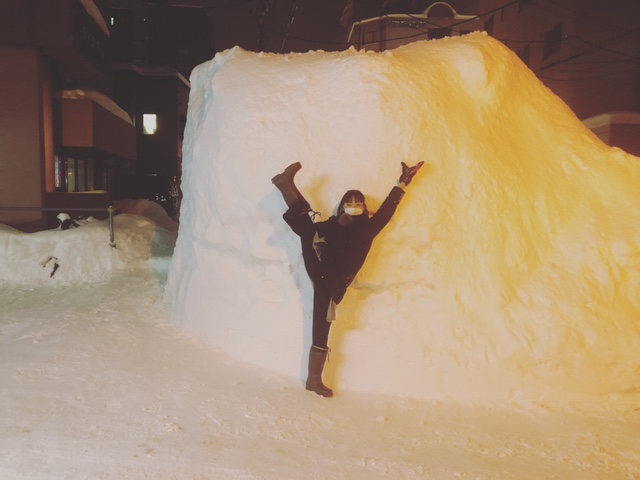 レッスン終了後、スタジオ前の雪山を削り、歩道作りしましたー♫