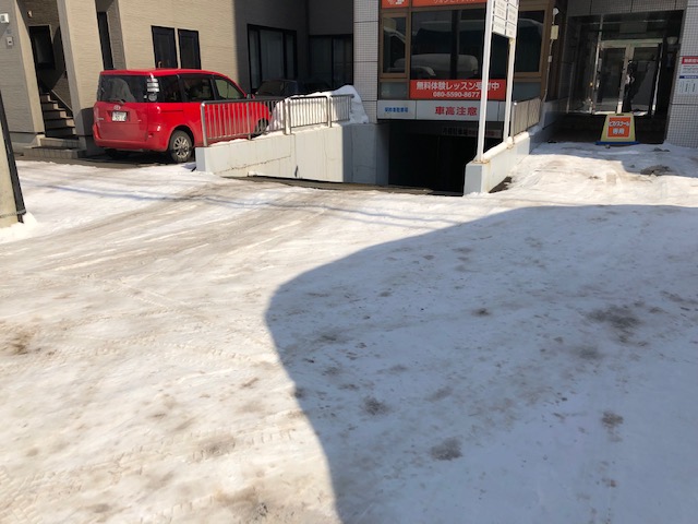 今シーズンの大雪は比較的湿気が多かったせいか、降った直後にどんどん路面の雪が車などで踏み固められ厚みをもってしまい、現在は想像で20〜30センチほど!!