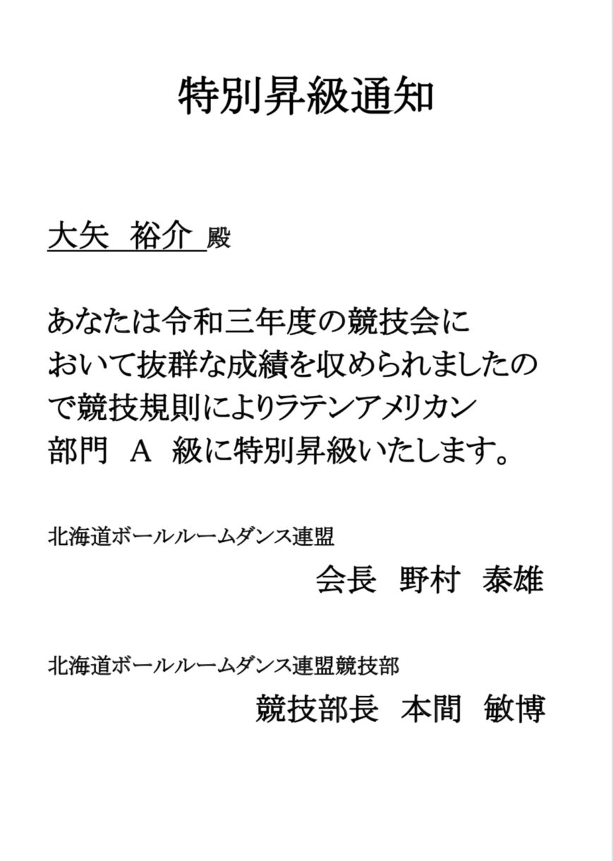 2021/11/27 23:54 祝勝会! 先日、学生競技会で頑張った2人の祝勝会をしました♫ そして、まさに本日、もう一つのめでたい話題が!!今年、アマチュアラテンC級だった彼らが、突出した成績を収めた事によって、B級を通り越して“A級”に、特別昇級しましたーー!!!! ほんと、よく頑張りましたねーー! 今日も2人で頑張って練習してました♫ またこれを機に、次なるステージで活躍してくれるといいですねーー♫ この記事へのコメント Keiko より: 2021/11/28 9:50 AM おめでとうございます🎉 素晴らしい👏👏👏 益々頑張って欲しいです。 感激を味わわせてね(。-_-。)‼ 平康弘 より: 2021/11/28 8:48 PM めでとうございます。 私は2010年の前久保先生のパーティでの踊りを見て以来、2人を勝手に心の中で応援してました。 今年の前久保先生のパーティでは、昨年以来応援してますと声掛けさせて頂いたら、11月の苫小牧の競技会でわざわざ控室の所に私らに挨拶来てくれました。 益々、私は2人のファンになりました。🤗 最後の冬全、応援してます❗️ まえくぼ より: 2021/12/04 11:20 PM keikoさん ありがとうございます!! これからもきっと、皆さまを感動させてくれると思います!!!これからも応援宜しくお願い致します!! まえくぼ より: 2021/12/04 11:22 PM 平先生 ありがとうございます!!! 先生にその様に言って頂けてとても嬉しいです!! 今後とも応援宜しくお願い致します!! Comments are closed. ひとつ新しい記事:パーティー… 一覧に戻る ひとつ古い記事:遅ればせな…
